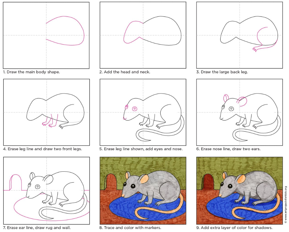 Как нарисовать крысу поэтапно