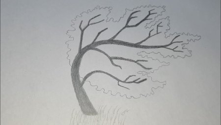 Рисунок дерево на ветру поэтапно