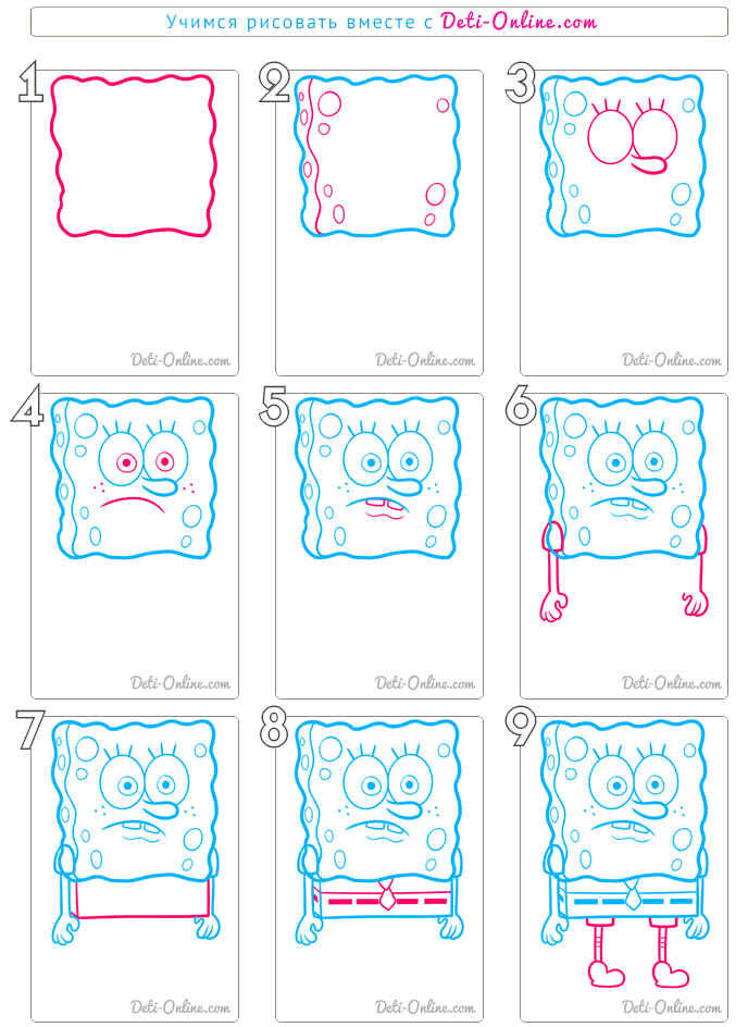 Как рисовать губку Боба поэтапно