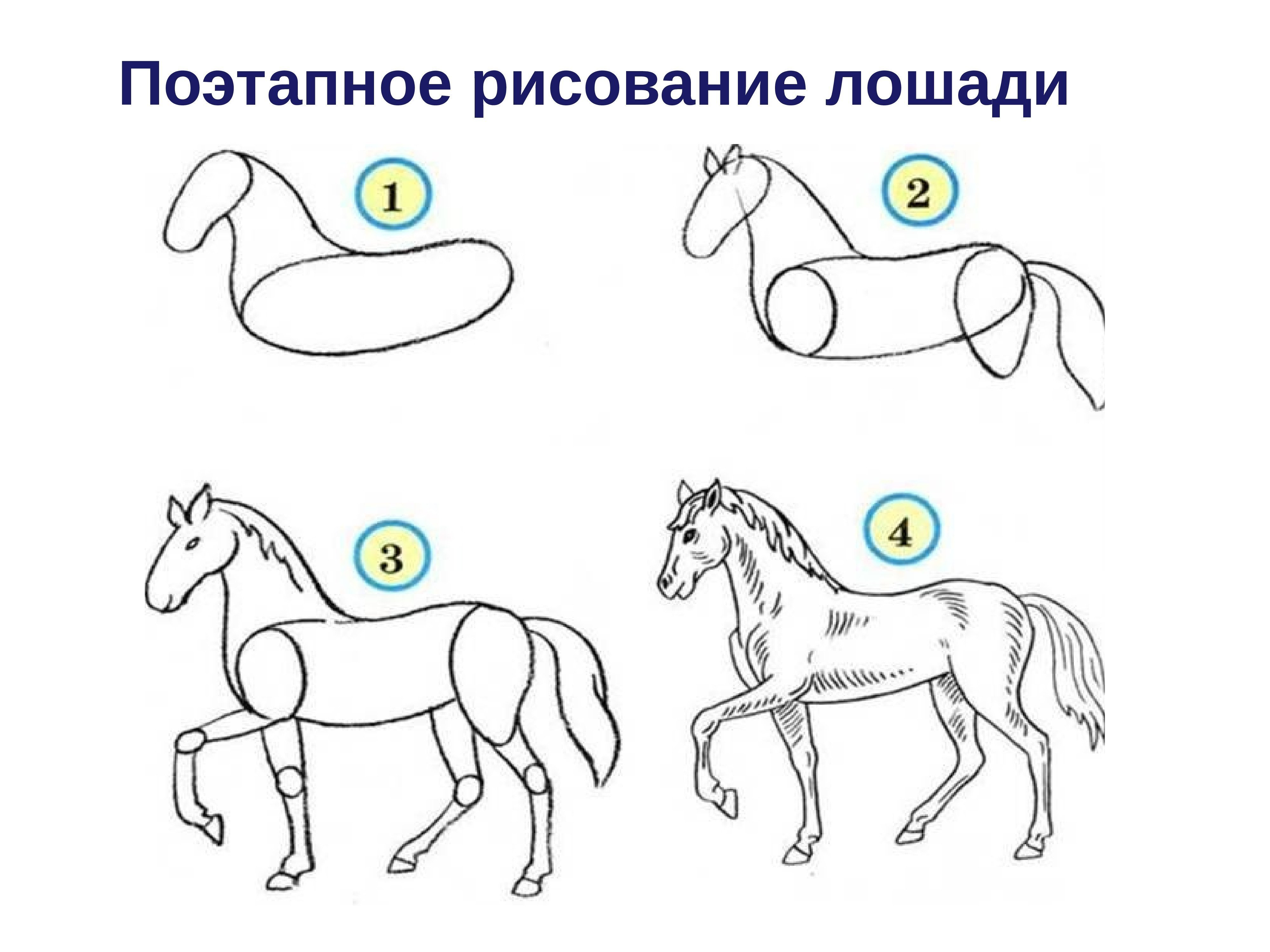 Рисование лошади пошагово для детей