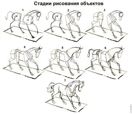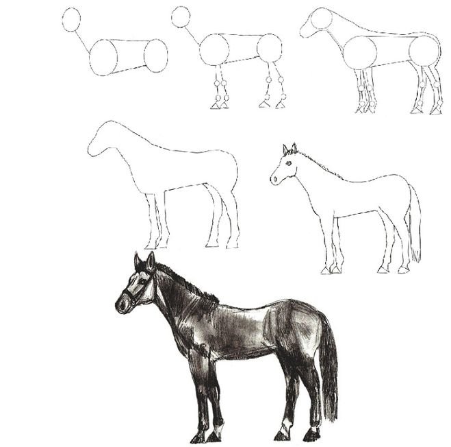 Поэтапное рисование лошади