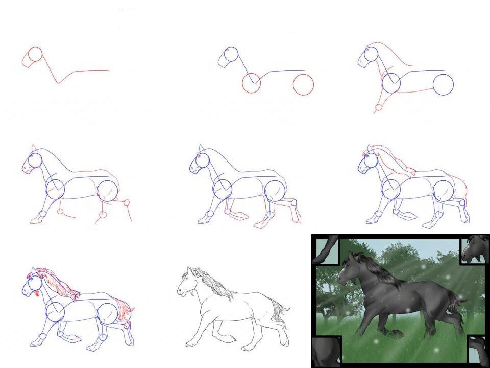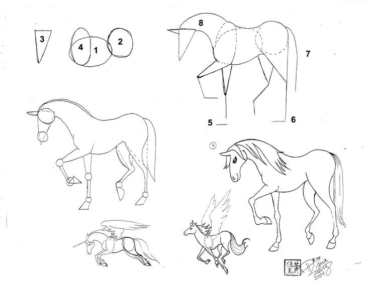 Схема рисования лошади