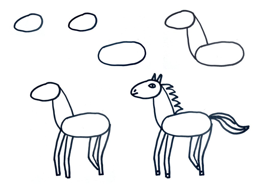 Лошадка пошаговое рисование для малышей