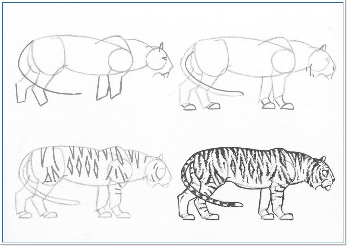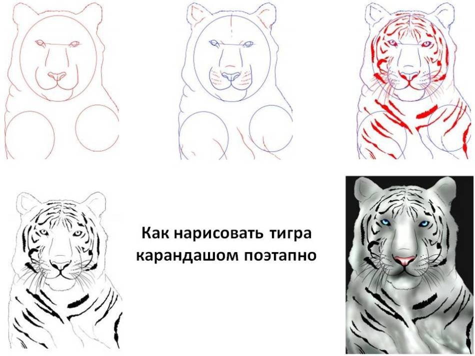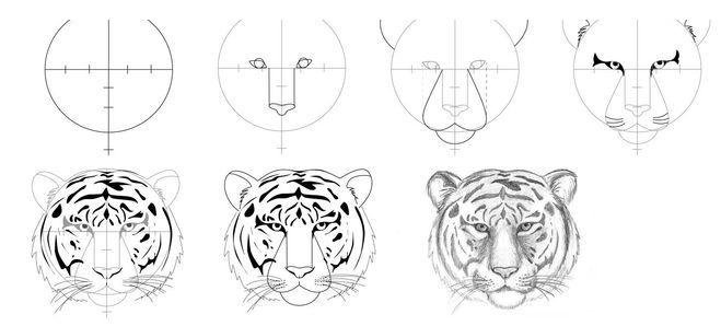 Рисунок тигра пошагово карандашом
