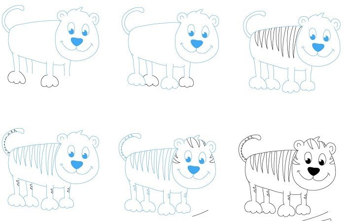 Пошаговый рисунок тигра для детей