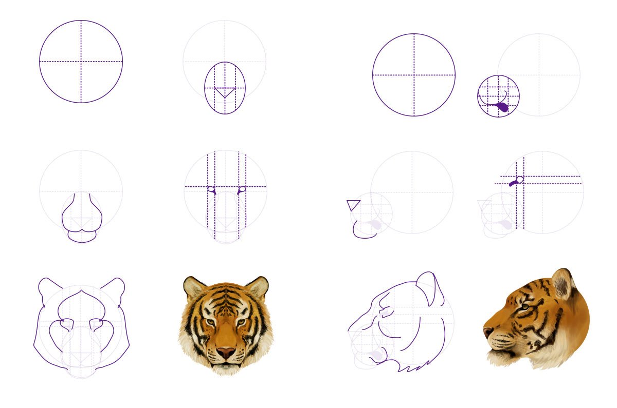 Тигр поэтапное рисование