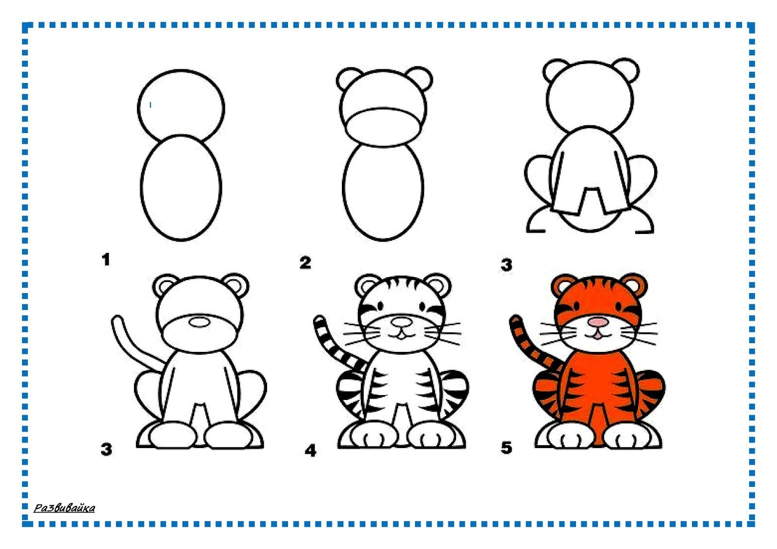 Схема рисования тигра для дошкольников