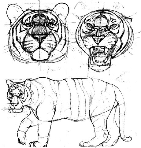 Поэтапное рисование тигра