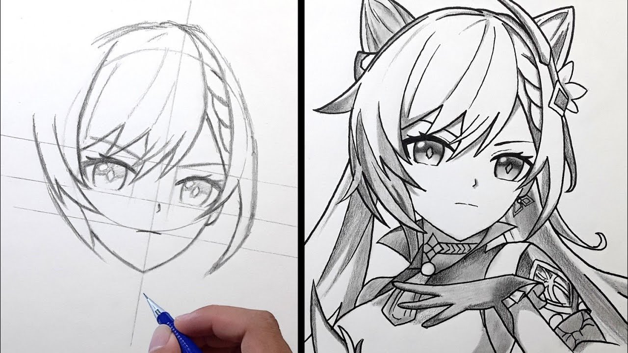 Геншин Импакт срисовать карандашом