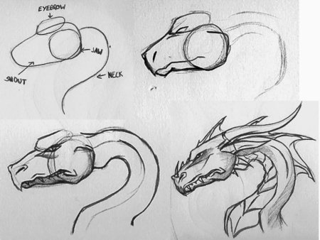 Пошаговое рисование дракона