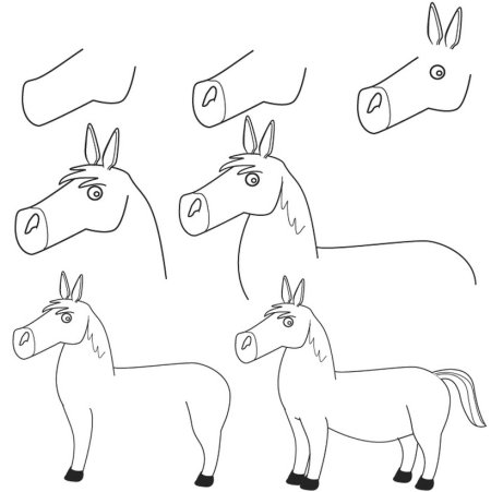 Нарисовать голову лошади пошагово