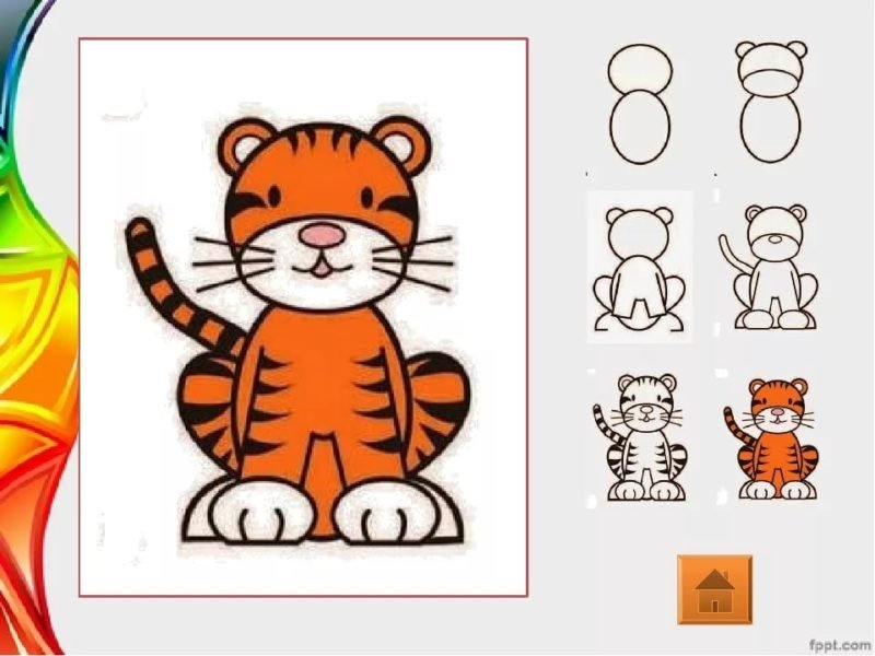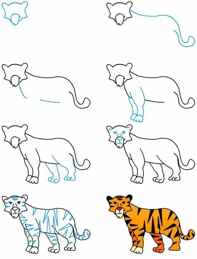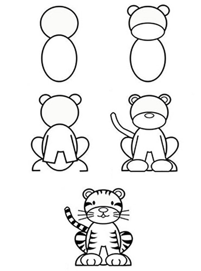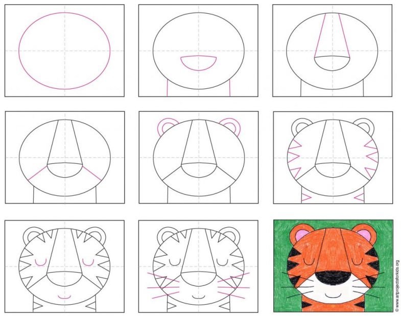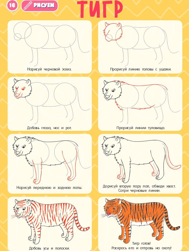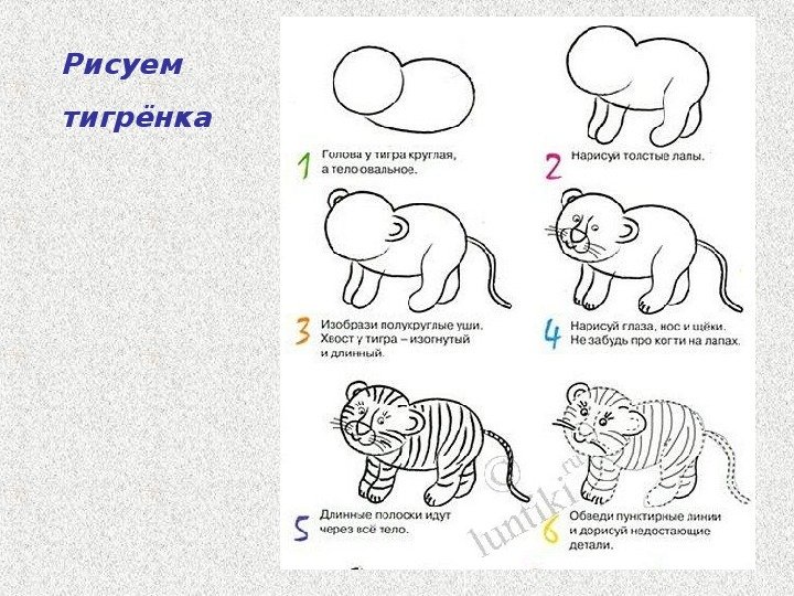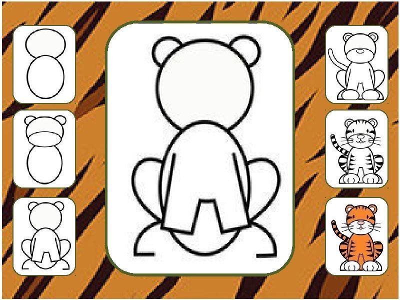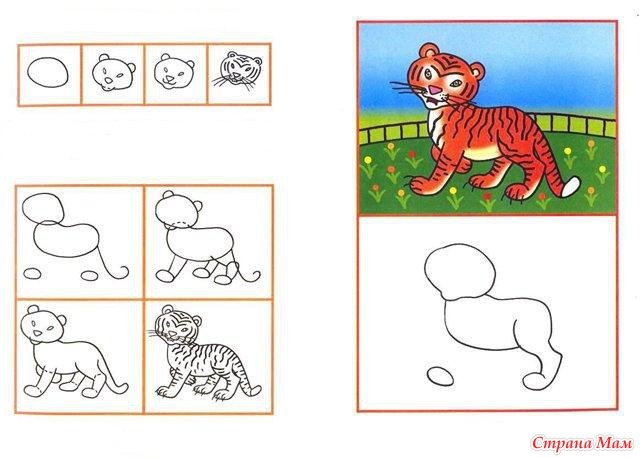 Схема рисования тигра для дошкольников