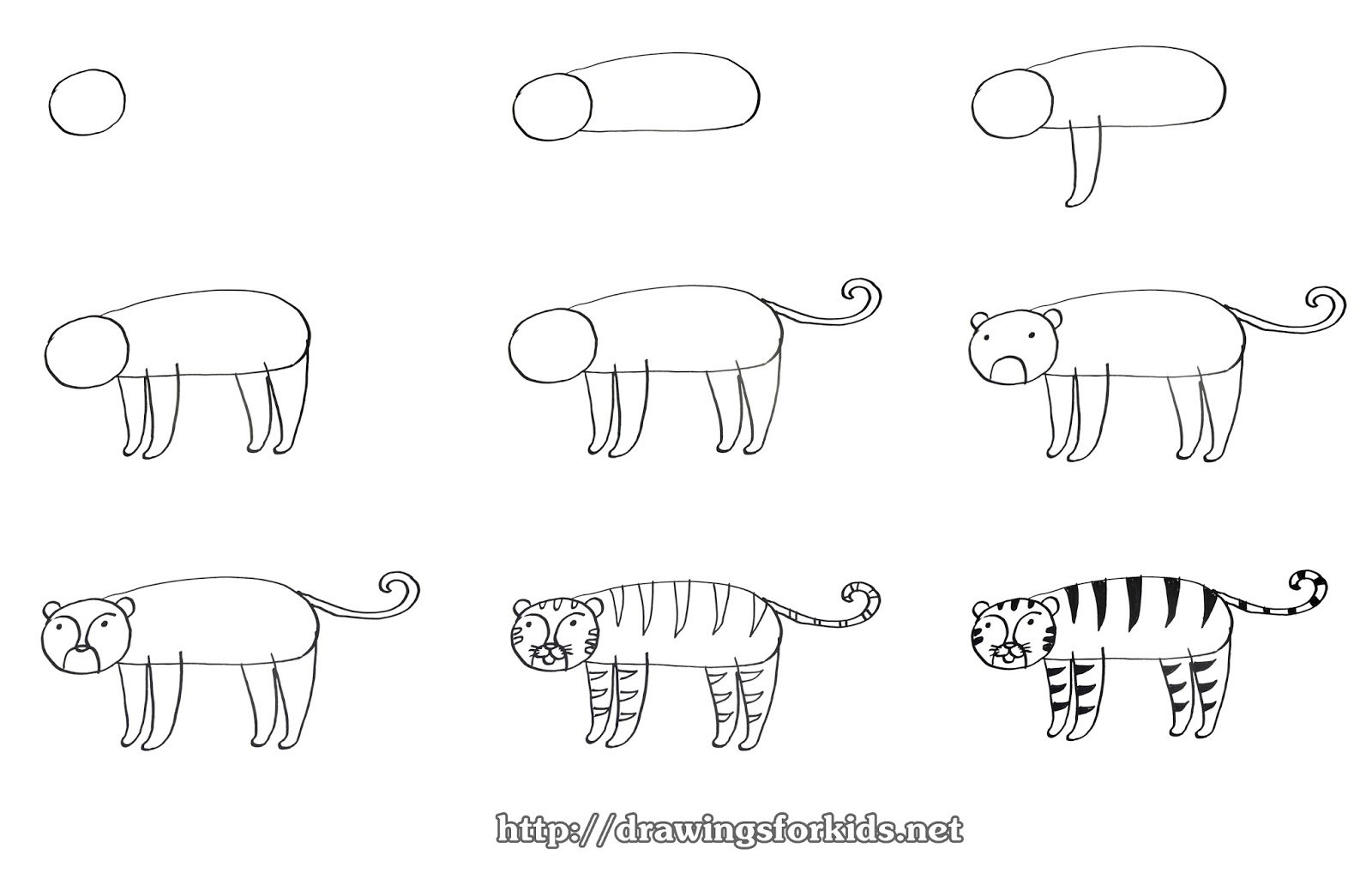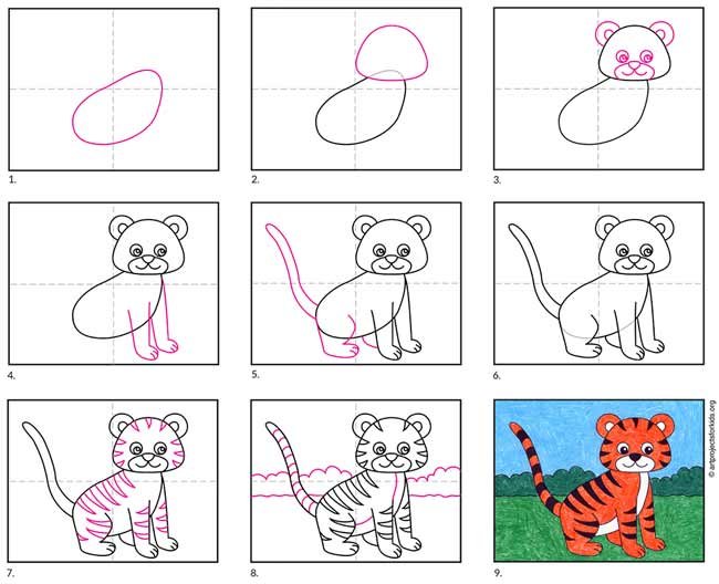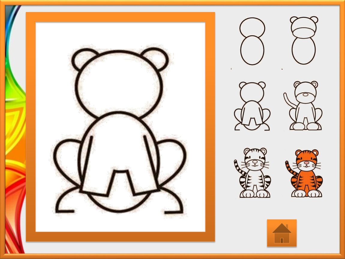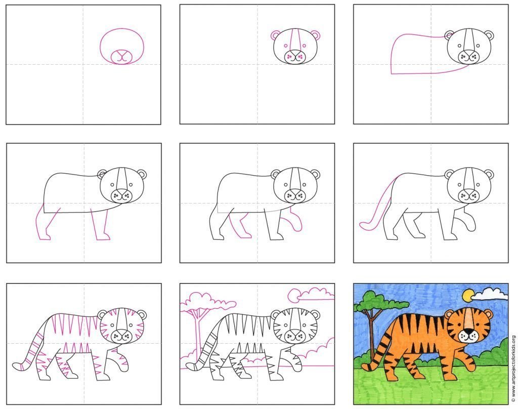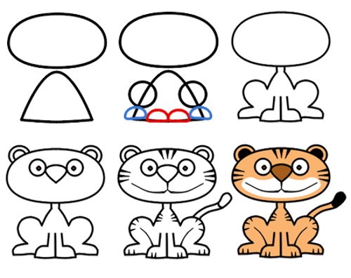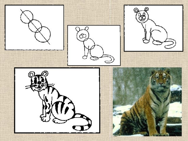 Схема рисования тигра для дошкольников