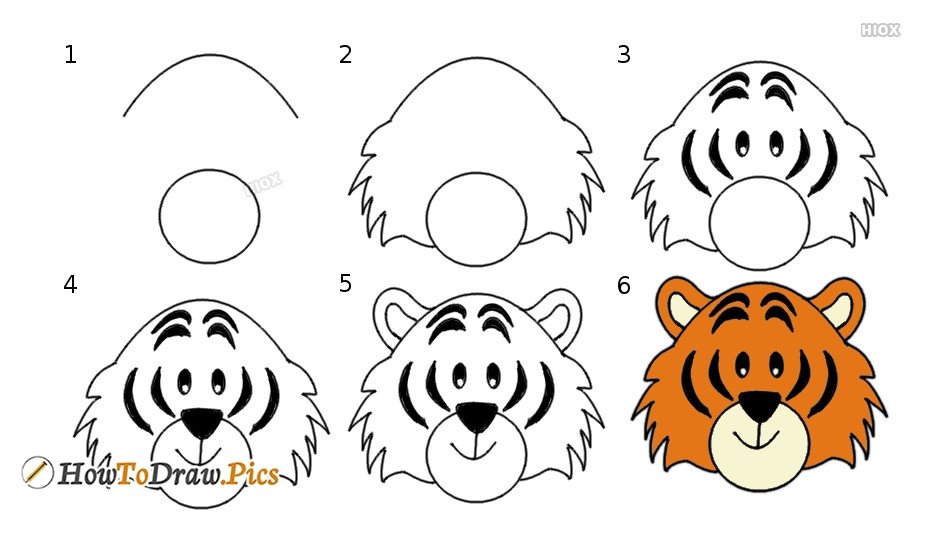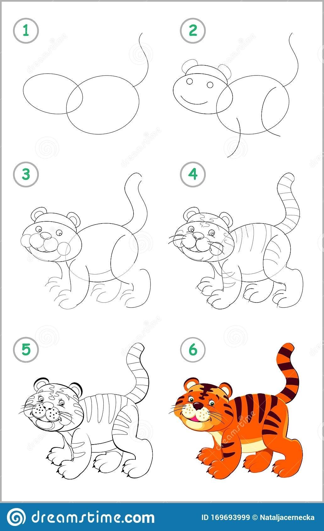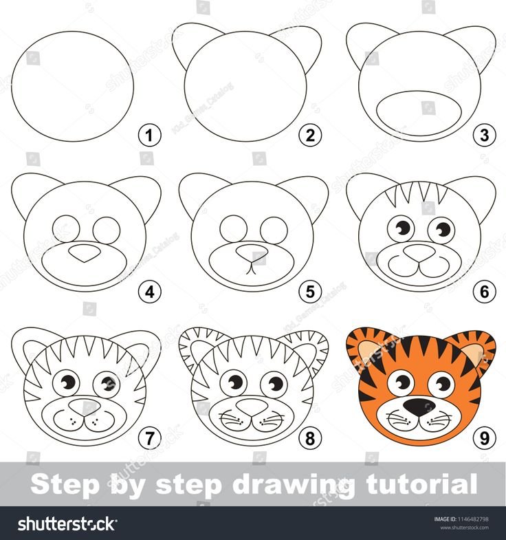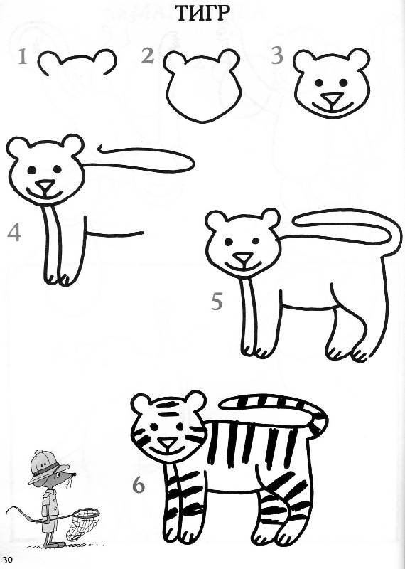 Тигр нарисовать поэтапно для детей