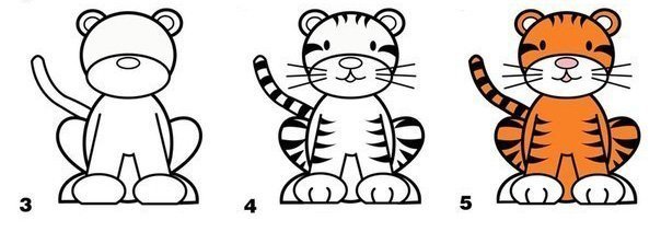 Рисунок тигра пошагово для детей