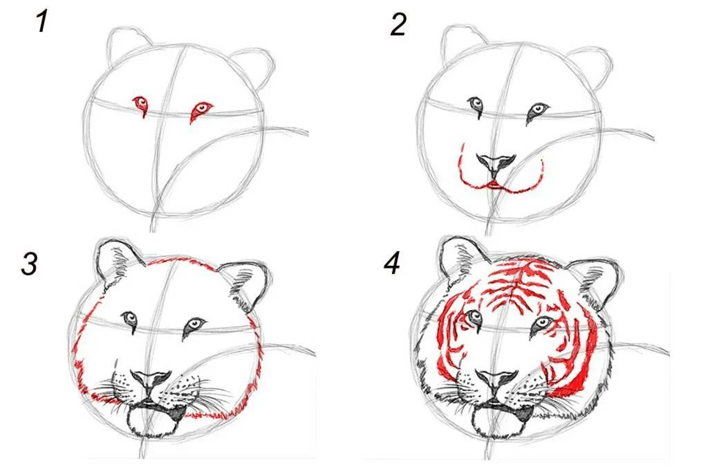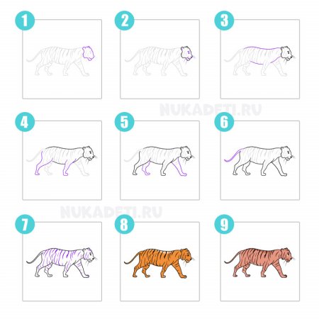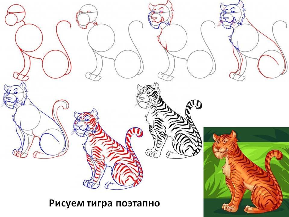Пошаговый рисунок тигра