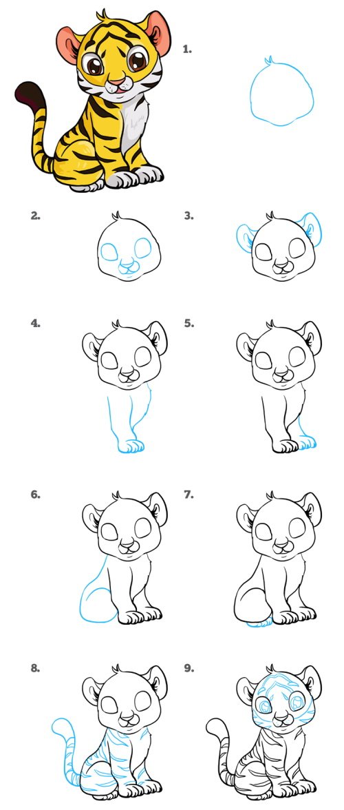 Рисуем тигренка поэтапно для детей