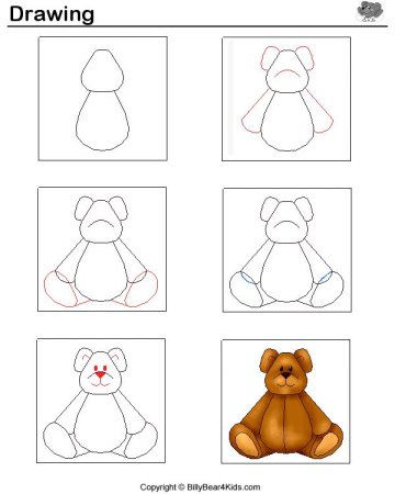 Поэтапное рисование игрушки медведя