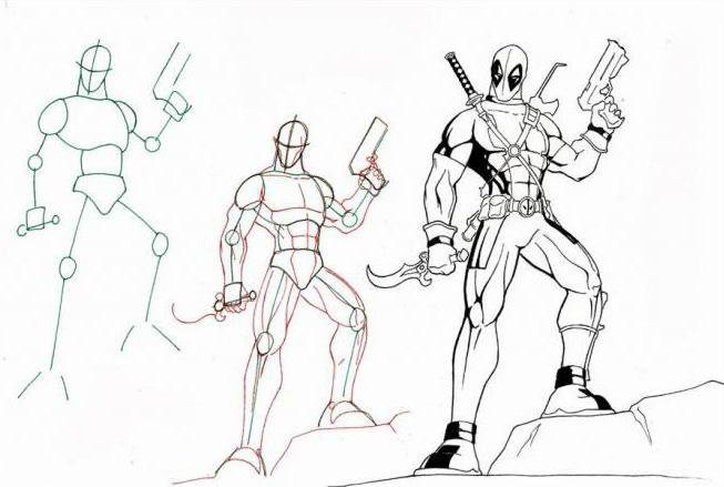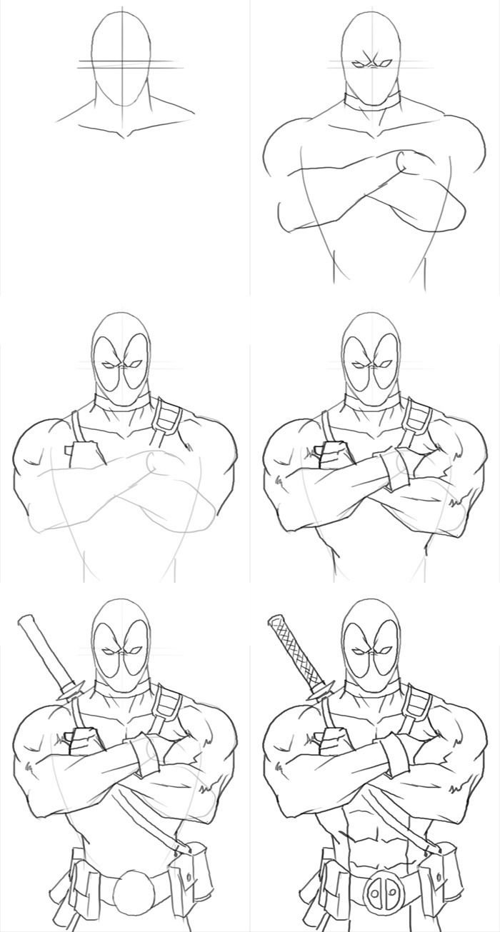 Дэдпул в полный рост рисунки пошагово карандашом для начинающих