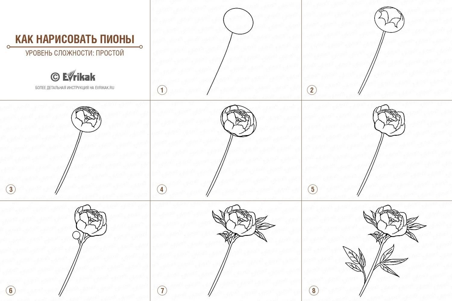 Пионы как рисовать пошагово