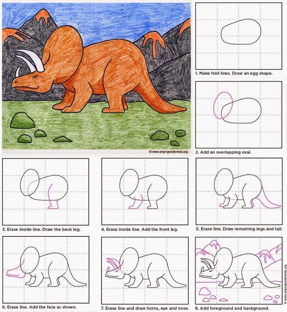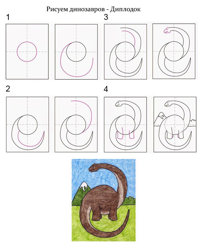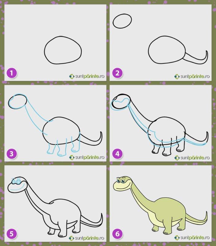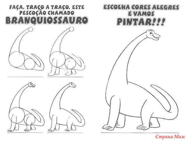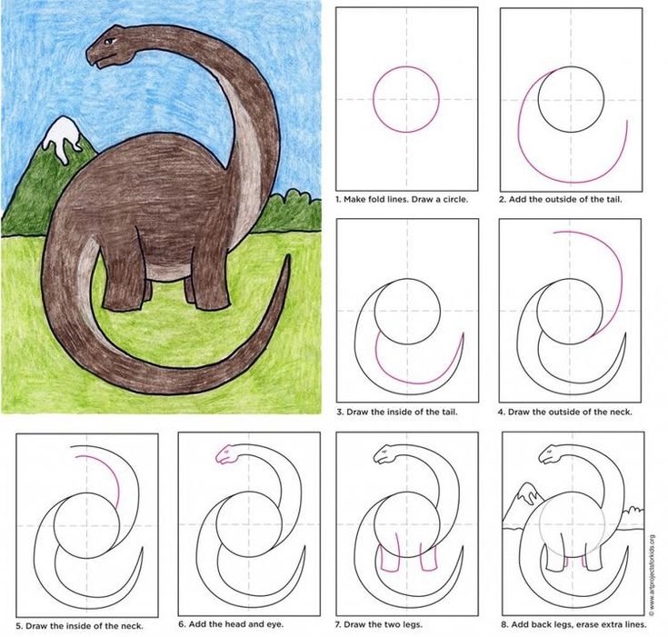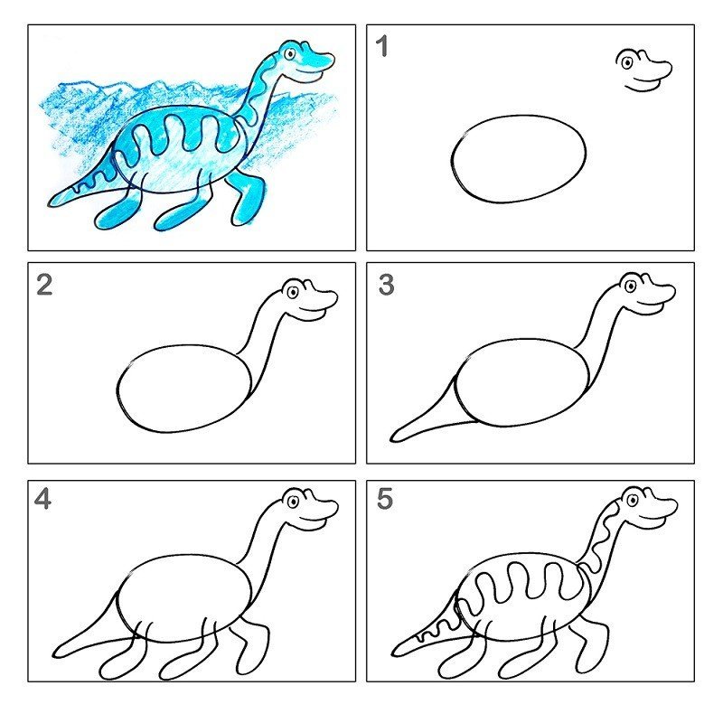 Схема рисования динозавра для детей