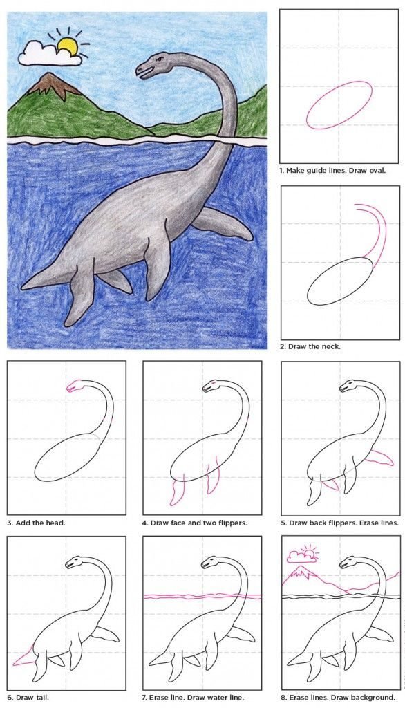 Схема рисования динозавра