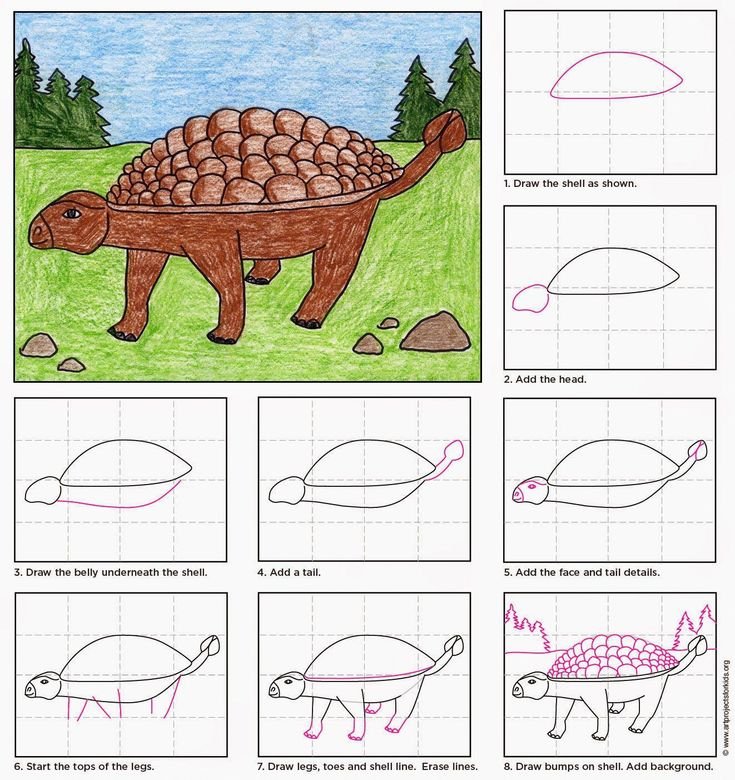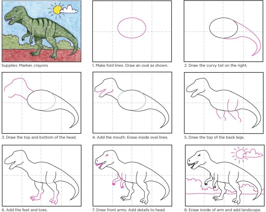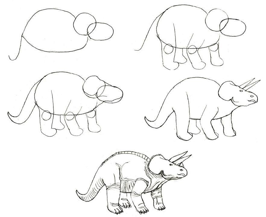 Как рисовать динозавра пошагово