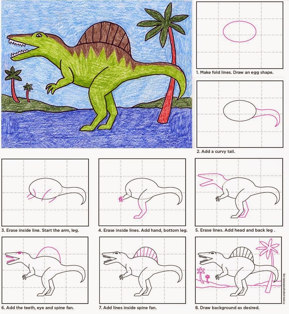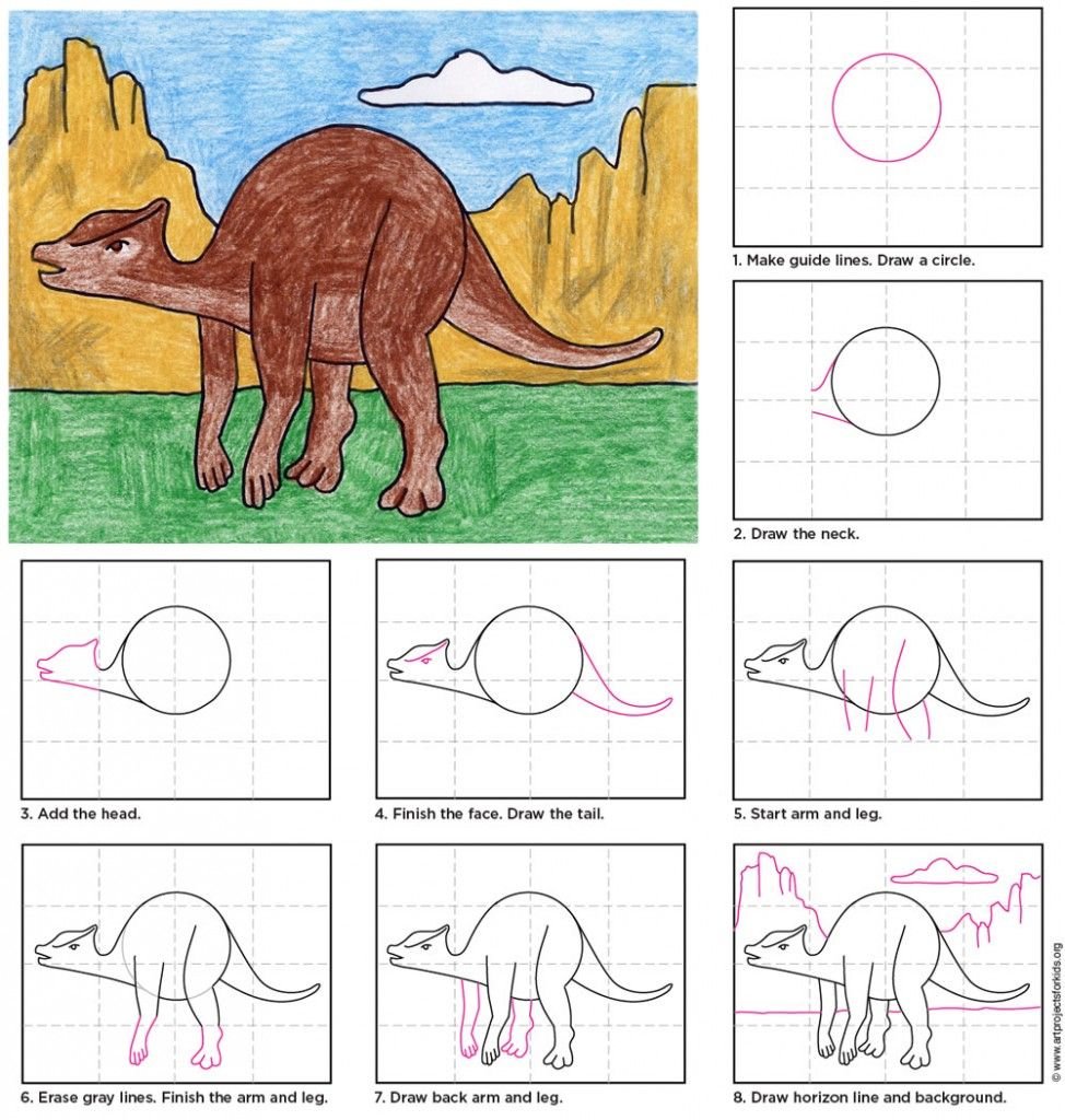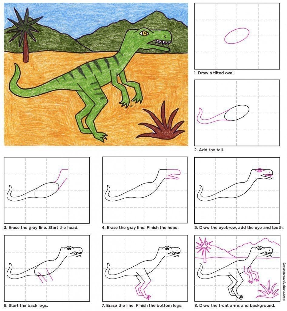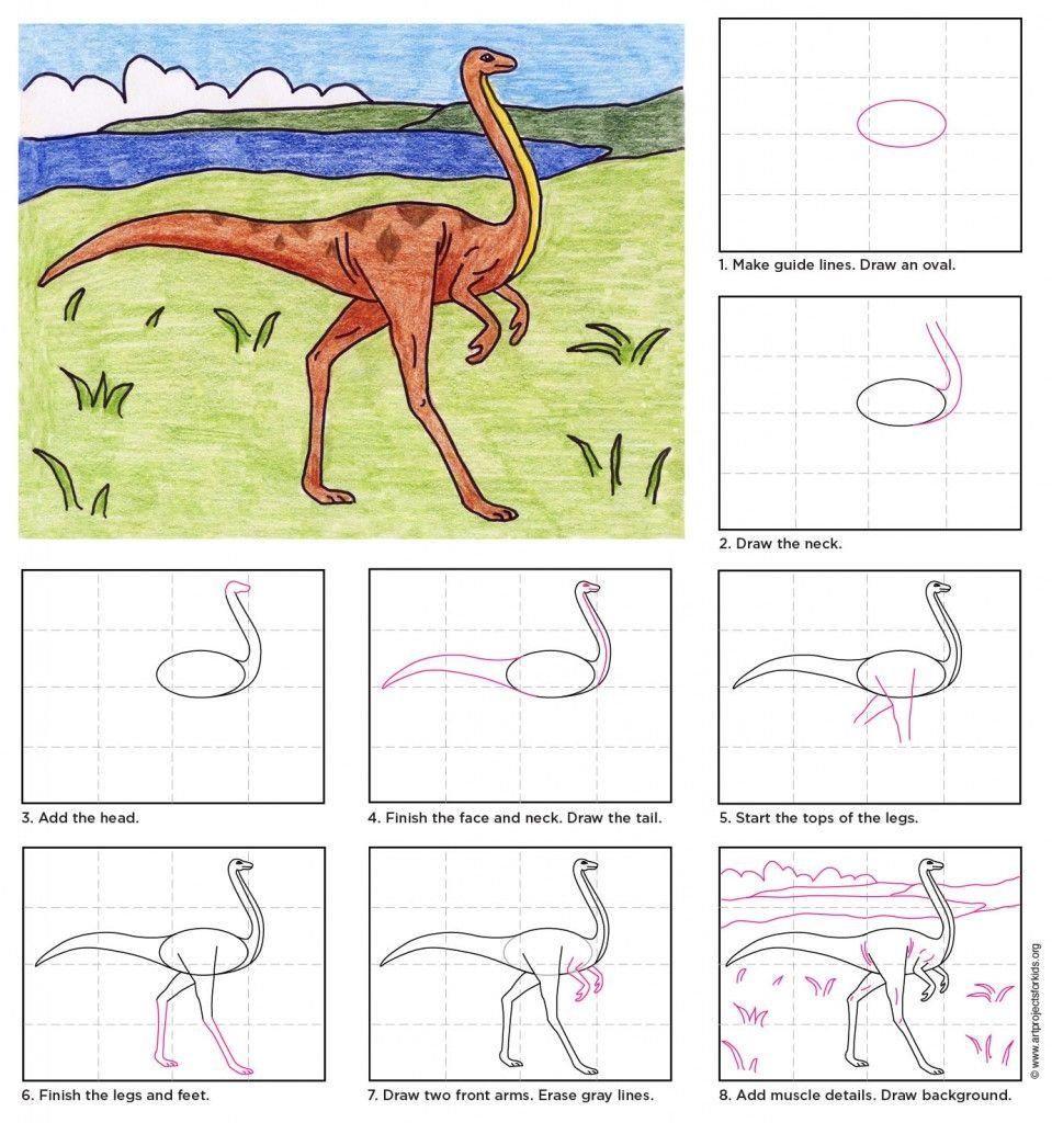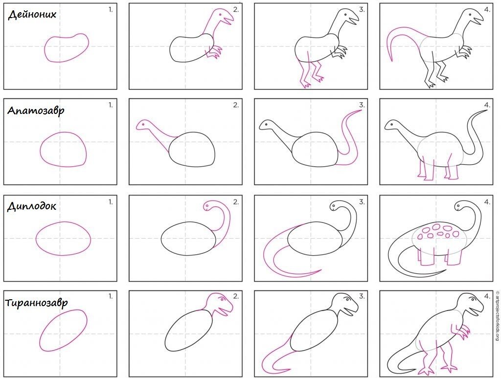 Рисунки динозавров по схеме