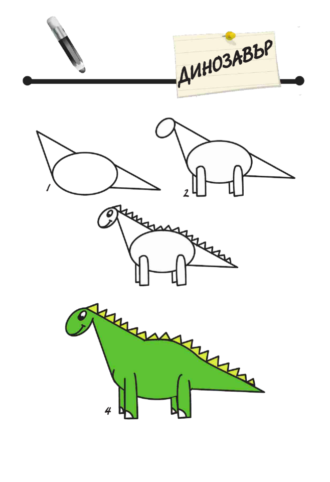 Динозавр рисунок пошагово для детей