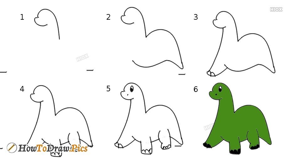 Динозавр пошаговое рисование