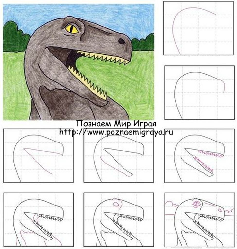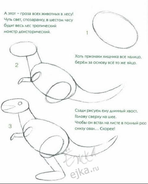 Как рисовать динозавра поэтапно