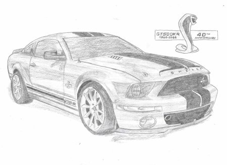 Рисунки карандашом Ford Mustang Shelby gt500