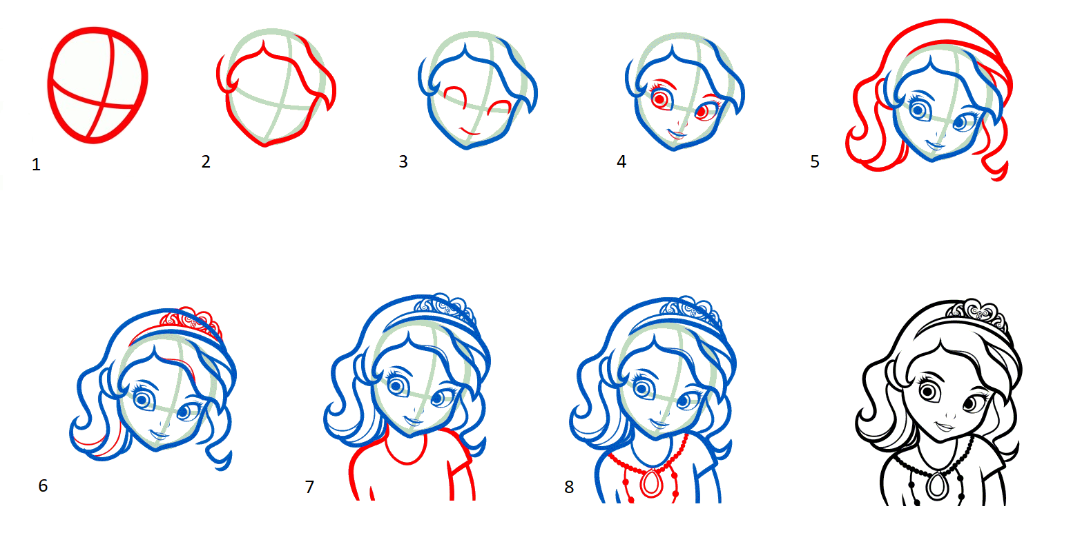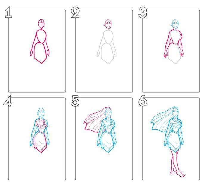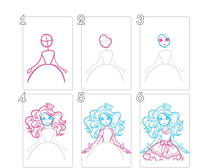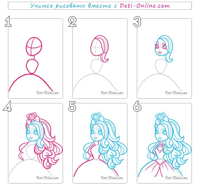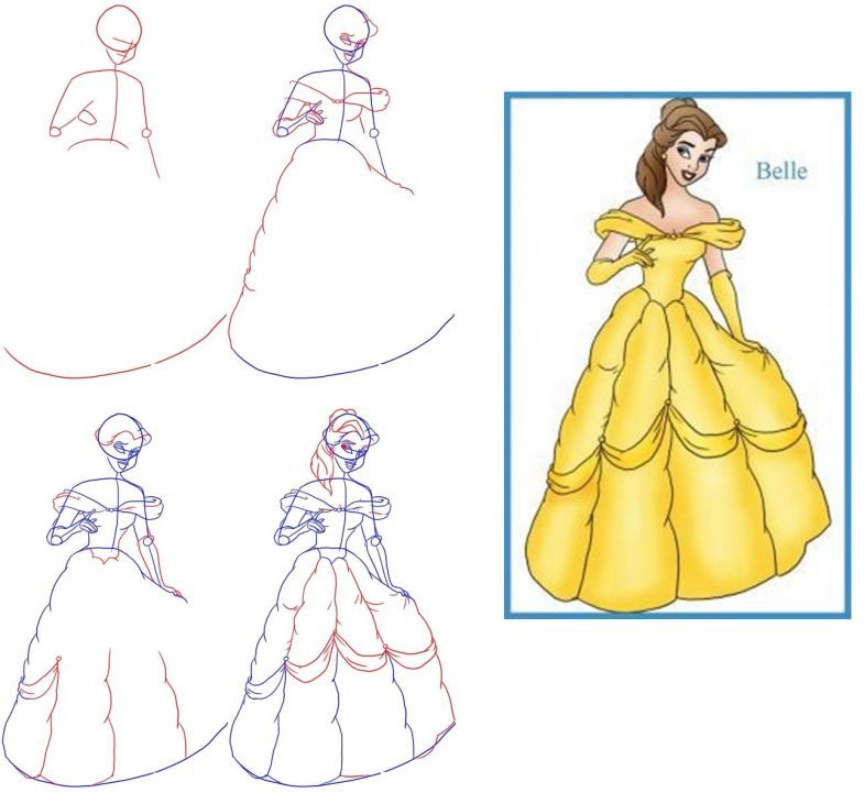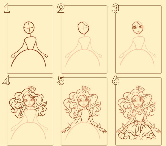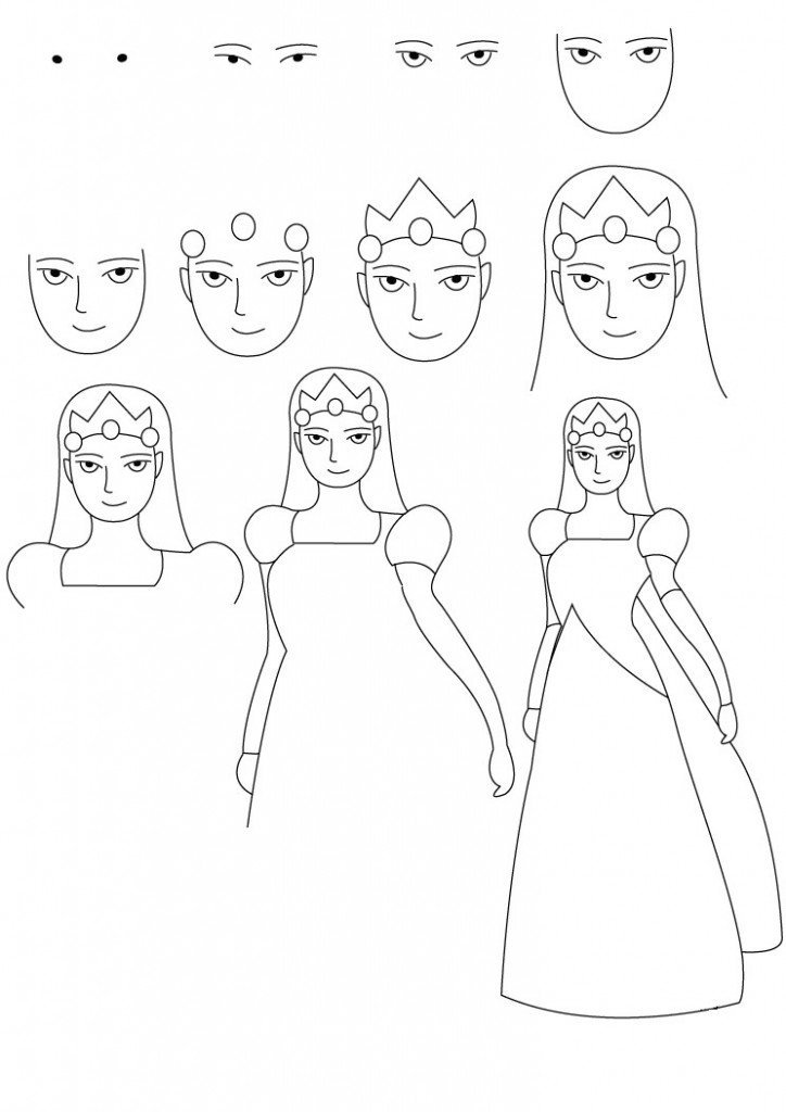 Поэтапный рисунок принцессы
