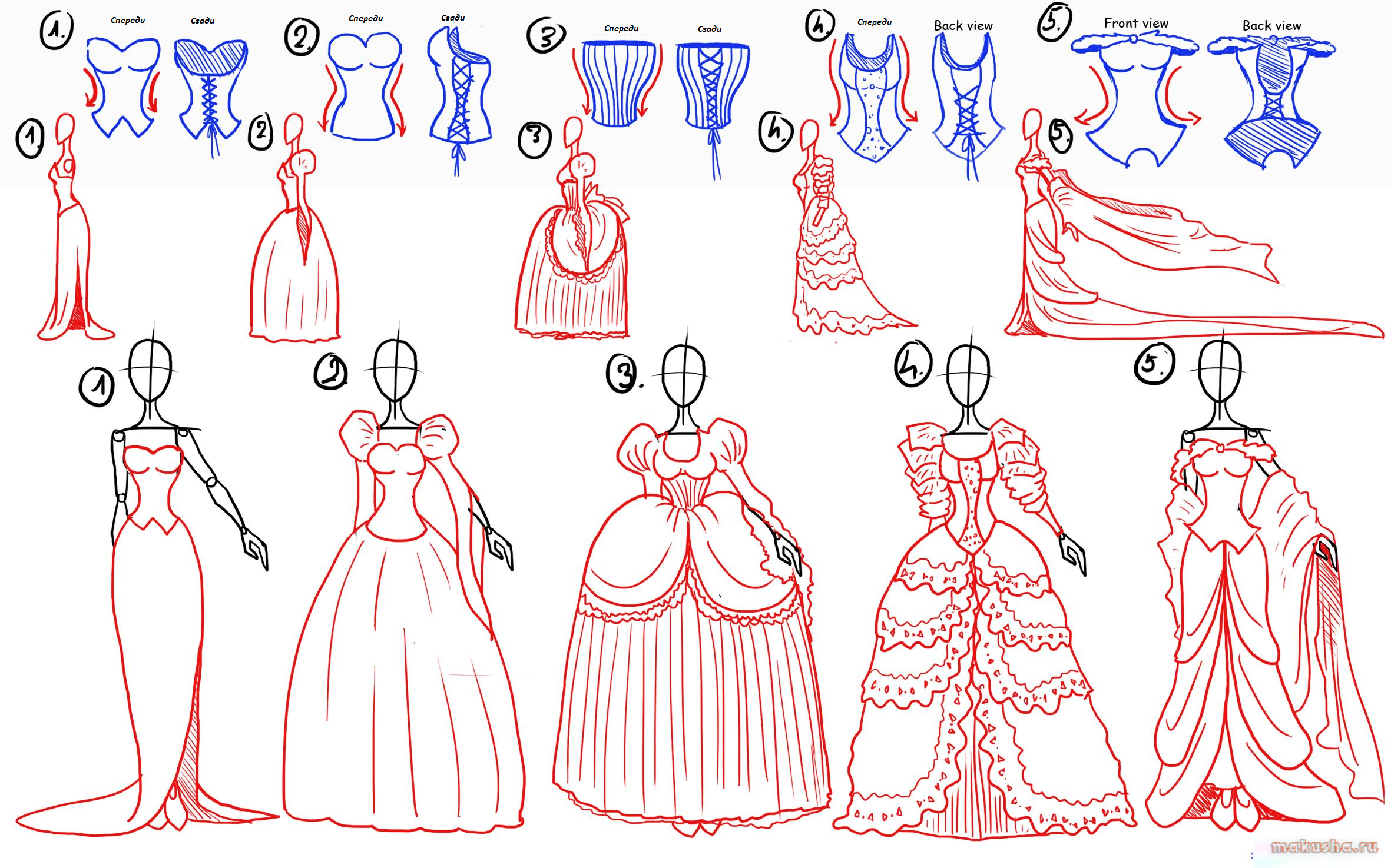 Поэтапное рисование платья