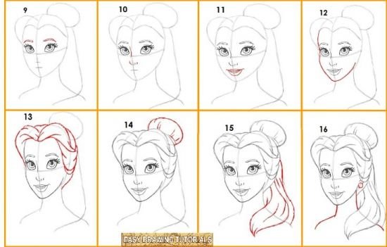 Пошаговый рисунок лицо Бель