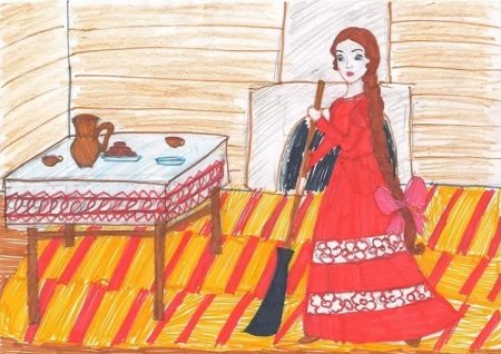 Рисунок к сказке Пушкина о мертвой царевне и семи богатырях