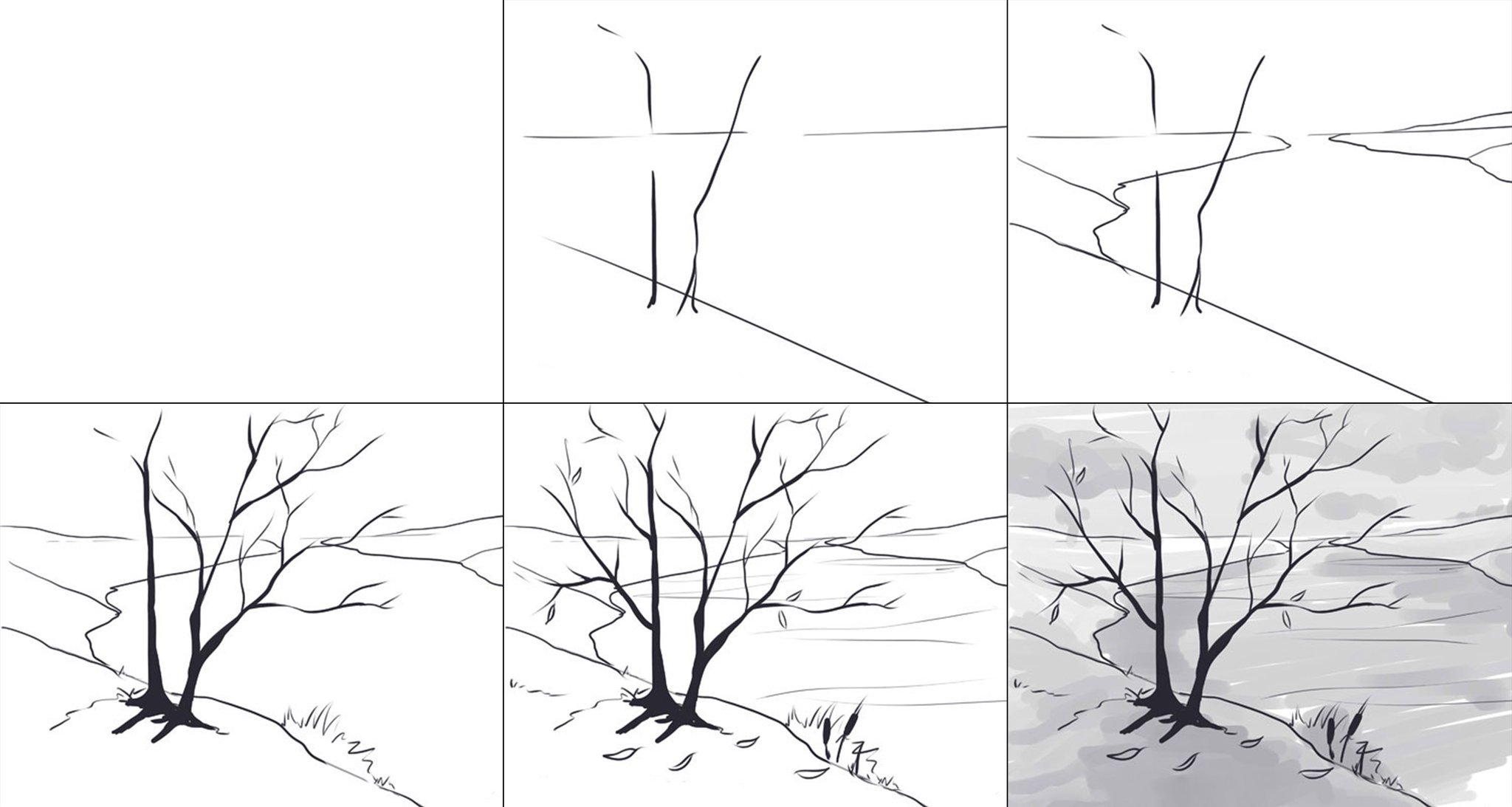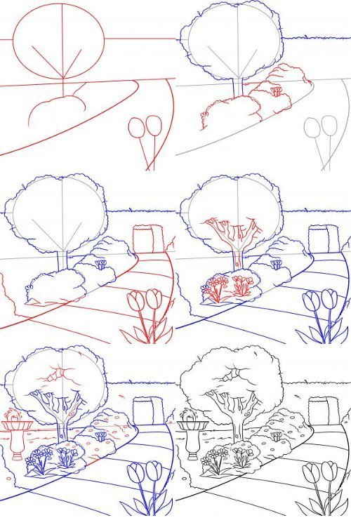Пошаговое рисование пейзажа