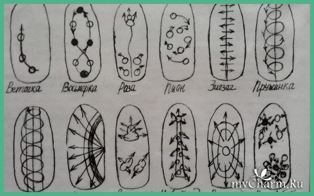 Схемы рисунков на ногтях пошагово