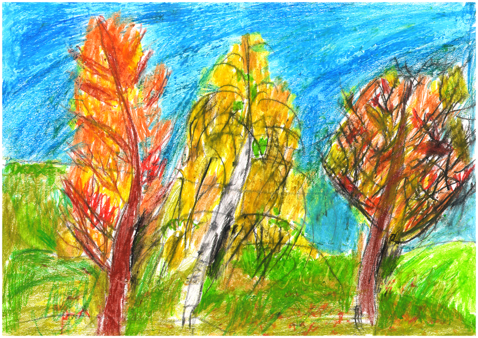 Осенний лес восковыми мелками