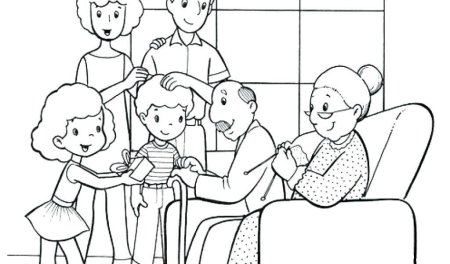 Раскраска семья с бабушкой и дедушкой