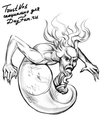 Рисунок водяного из сказки Летучий корабль