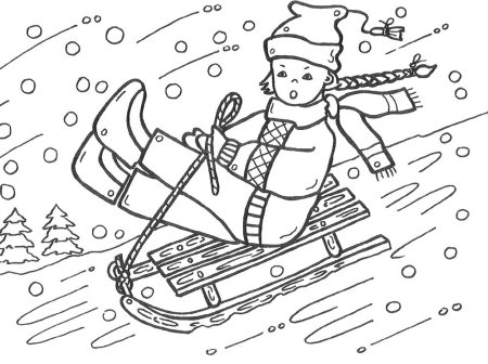 С горки на санках раскраска