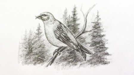 Клёст птица рисунок карандашом