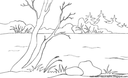 Лес и речка раскраска