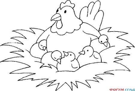 Курочка с цыплятами раскраска