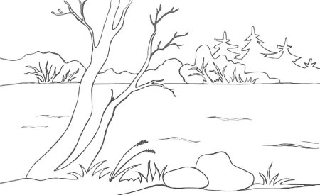 Раскраска Речной пейзаж