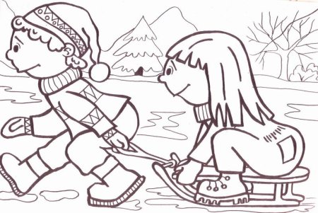 Санки раскраска для детей