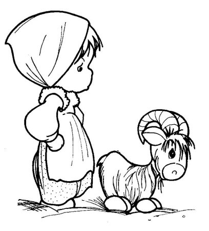 Коза и девочка раскраска для детей