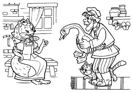 Раскраска к сказке кот петух и лиса для детей