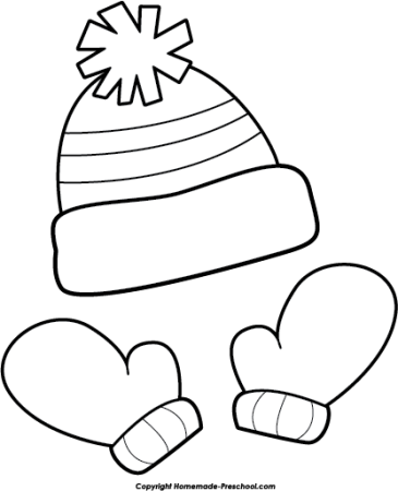 Зимняя шапка и варежки раскраска для детей